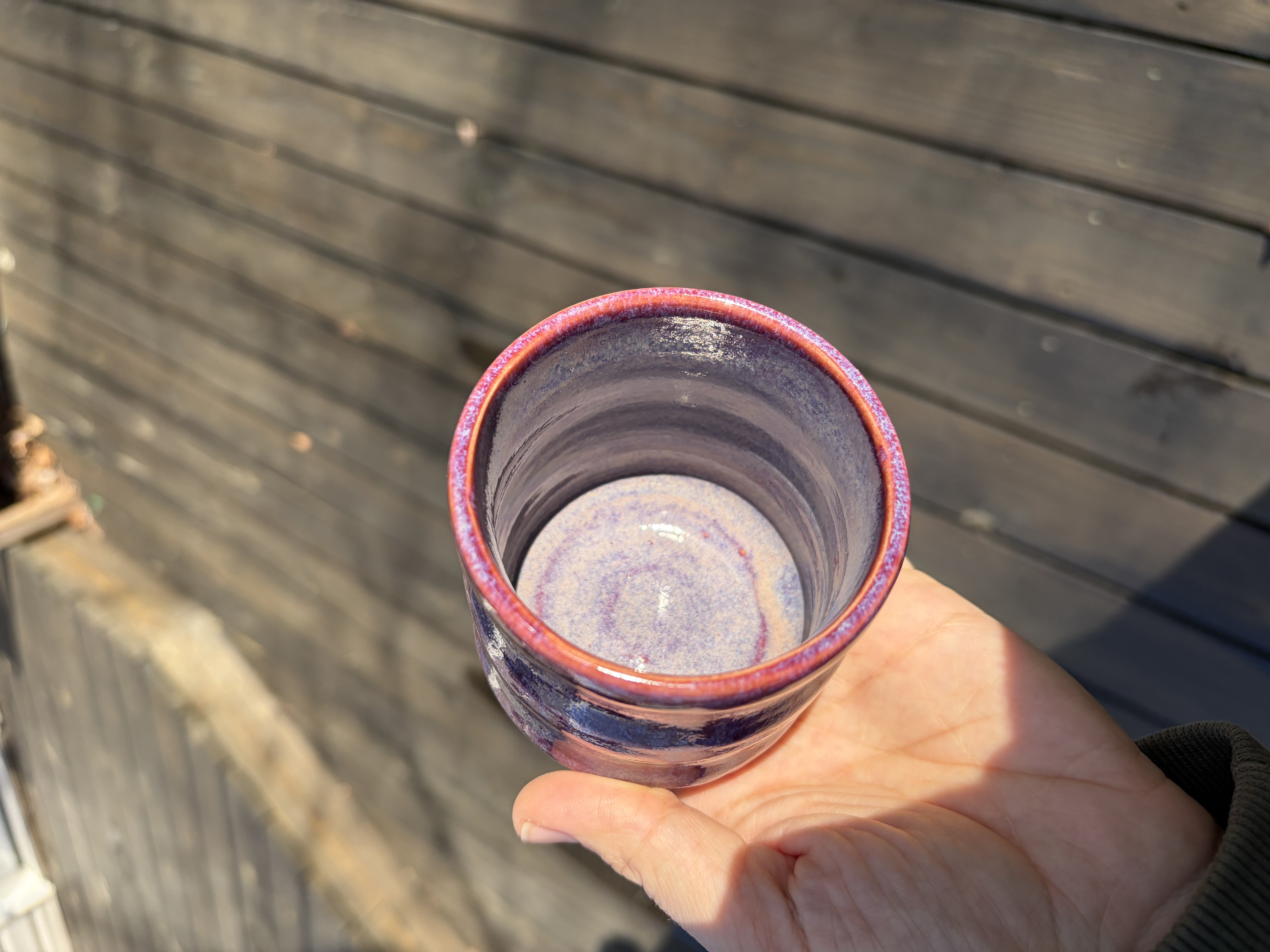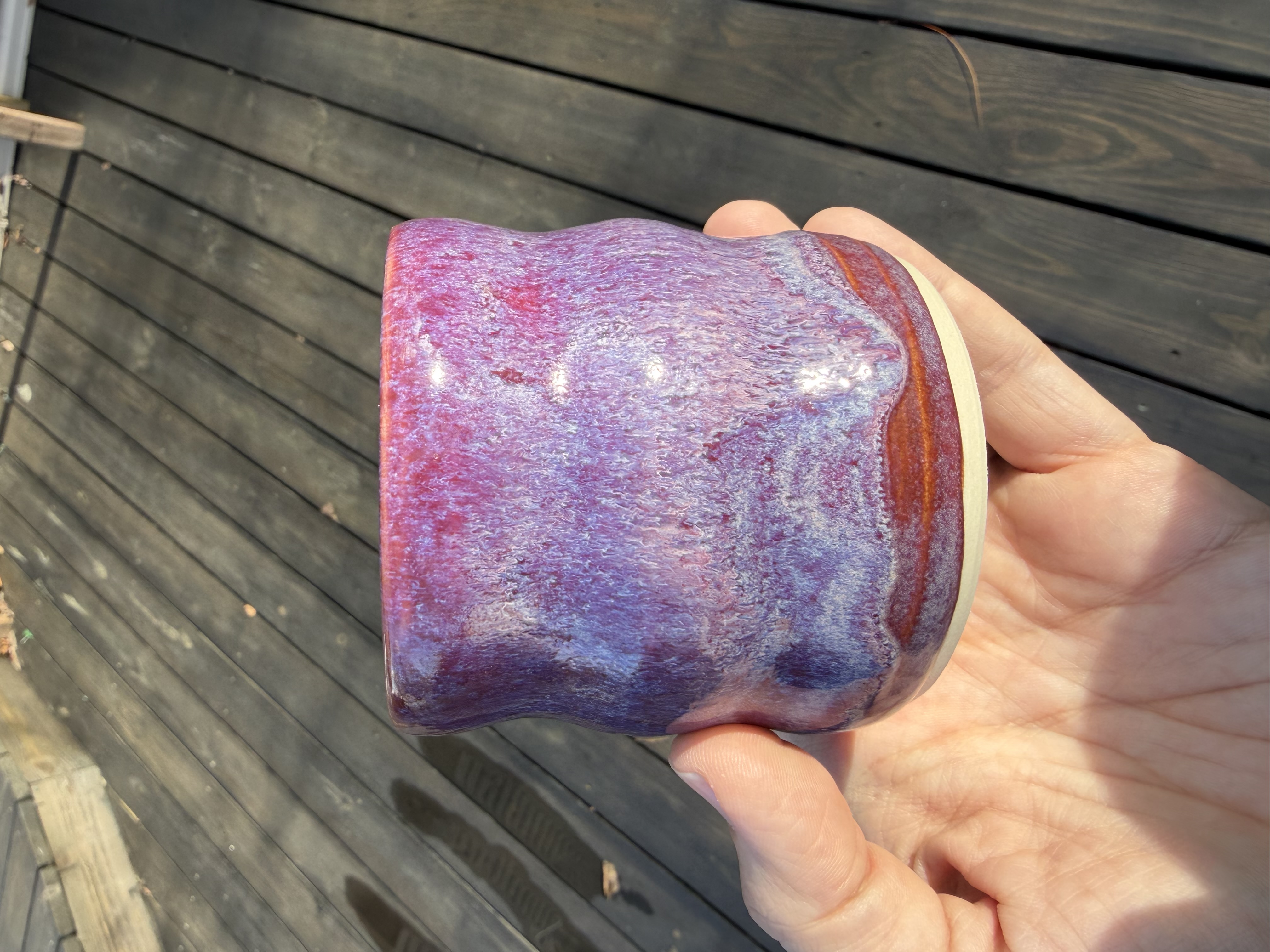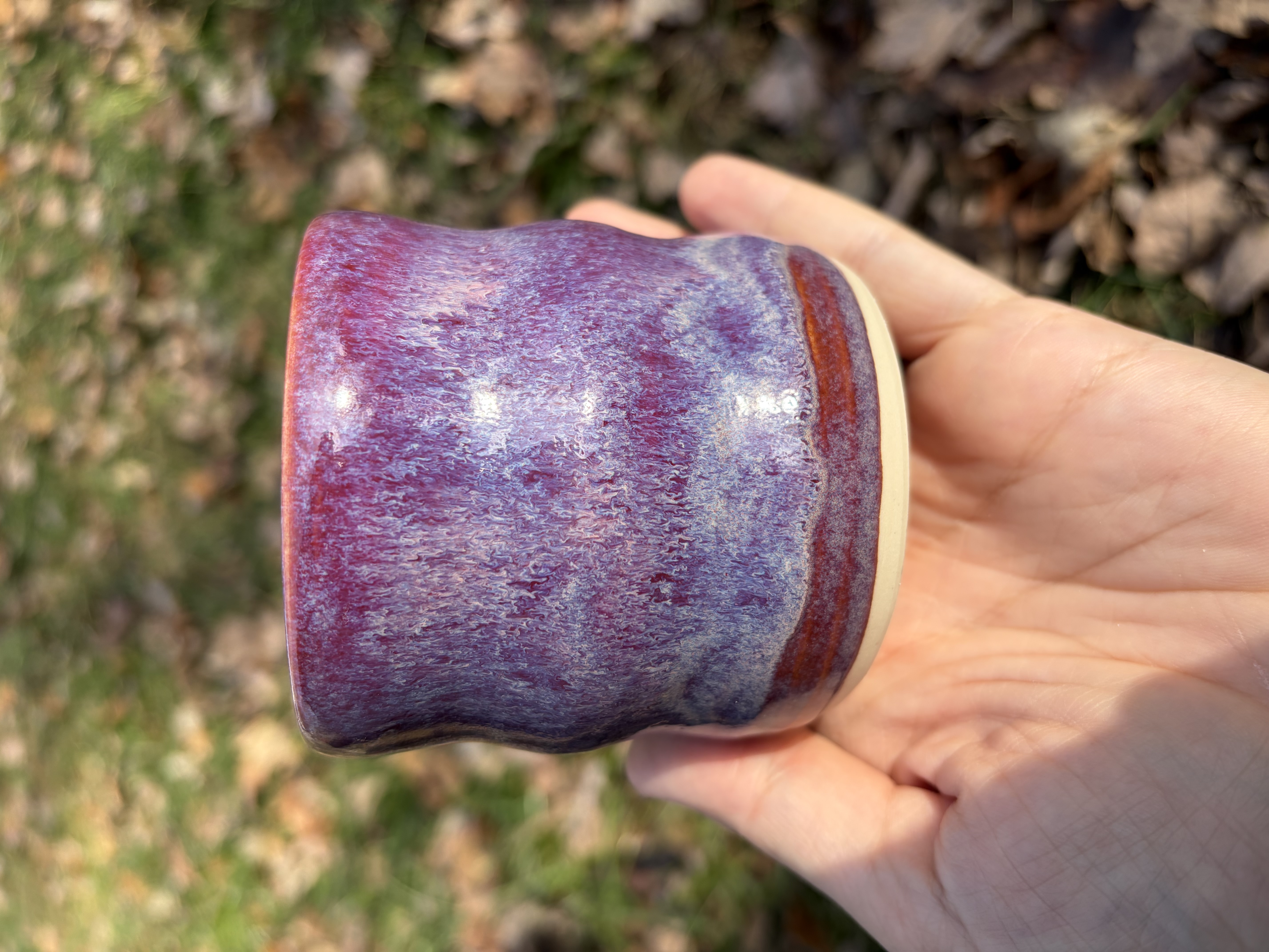 Handmade, wheel thrown cups, glazed with unique glaze combos and fired to a glossy finish.